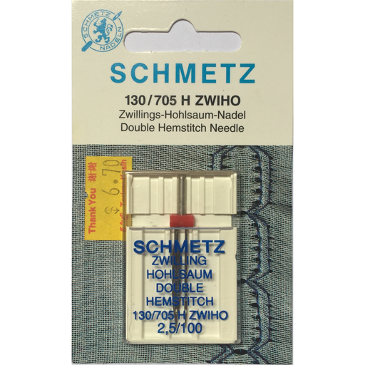 Descriptions Schmetz Double Hemstitch Needles Size 2.5/100 Features A wing needle and a universal needle with a 2.5 mm separation combined on ...