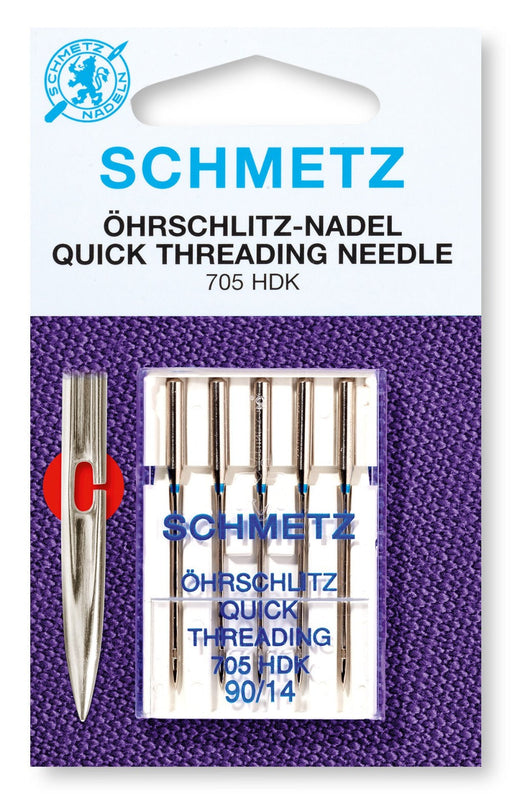 Descriptions Schmetz Quick Threading Needle Size 80/12 90/14 Color Code None Features Universal needle with a slip-in threading slot in the...
