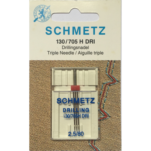 Descriptions Schmetz Drilling Triple Needles Thread the machine with 3 different coloured threads, and thread one colour per eye, set the machine ...