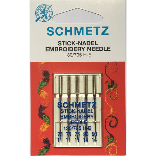 Descriptions Schmetz Embroidery Needles Size 75/11 90/14 Assorted 2x75/11; 2x90/14 Features Light ball point, wide eye and groove. Fabric Use...