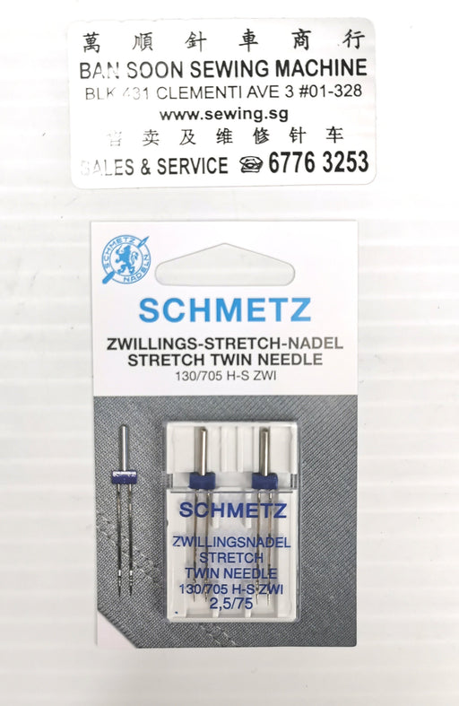 Descriptions Schmetz Stretch Twin Needles Size 2,5/75 4,0/75 Feature 2,5/75 - Needle distance 2.5mm, needle size NM 75 2,5/75 - Needle distance...