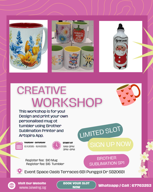 Original price $10.00 SGD - Original price $15.00 SGDOriginal price$10.00 SGD - $15.00 SGD$10.00 SGD - $15.00 SGDCurrent price $10.00 SGDCreative Mug & Tumbler Workshop β Brother Sublimation Printing Experience
