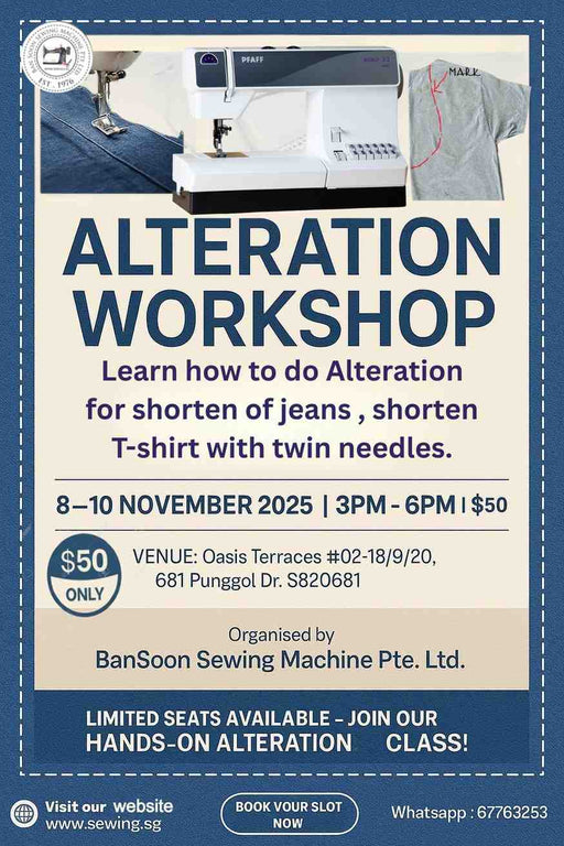 Get ready for an exciting month of creativity and craftsmanship! Ban Soon Sewing Machine Pte. Ltd. proudly presents a variety of hands-on sewing workshops this November β from beginner-friendly sessions to advanced sewing projects.