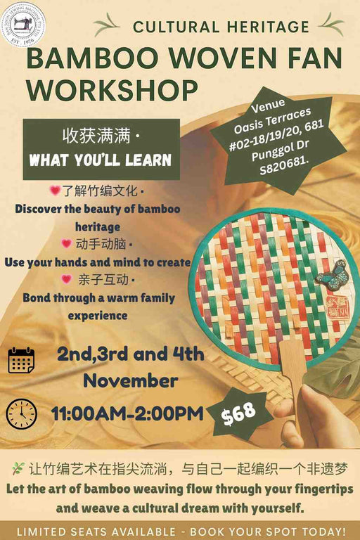 Original price $68.00 SGD - Original price $68.00 SGDOriginal price$68.00 SGD$68.00 SGD - $68.00 SGDCurrent price $68.00 SGDCultural Heritage: Bamboo Woven Fan Workshop