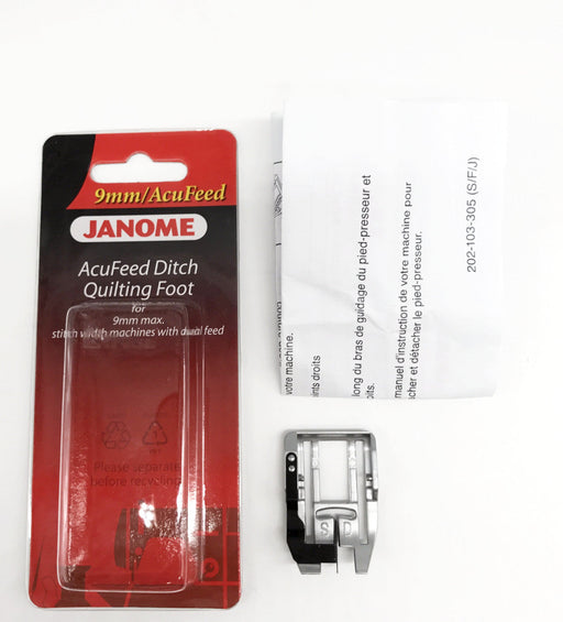 Descriptions Janome Acufeed Ditch Quilting Foot - 9mm (Original) 9mm Stitch width machines with dual feed Part Number: 202103006 Instruction given ...